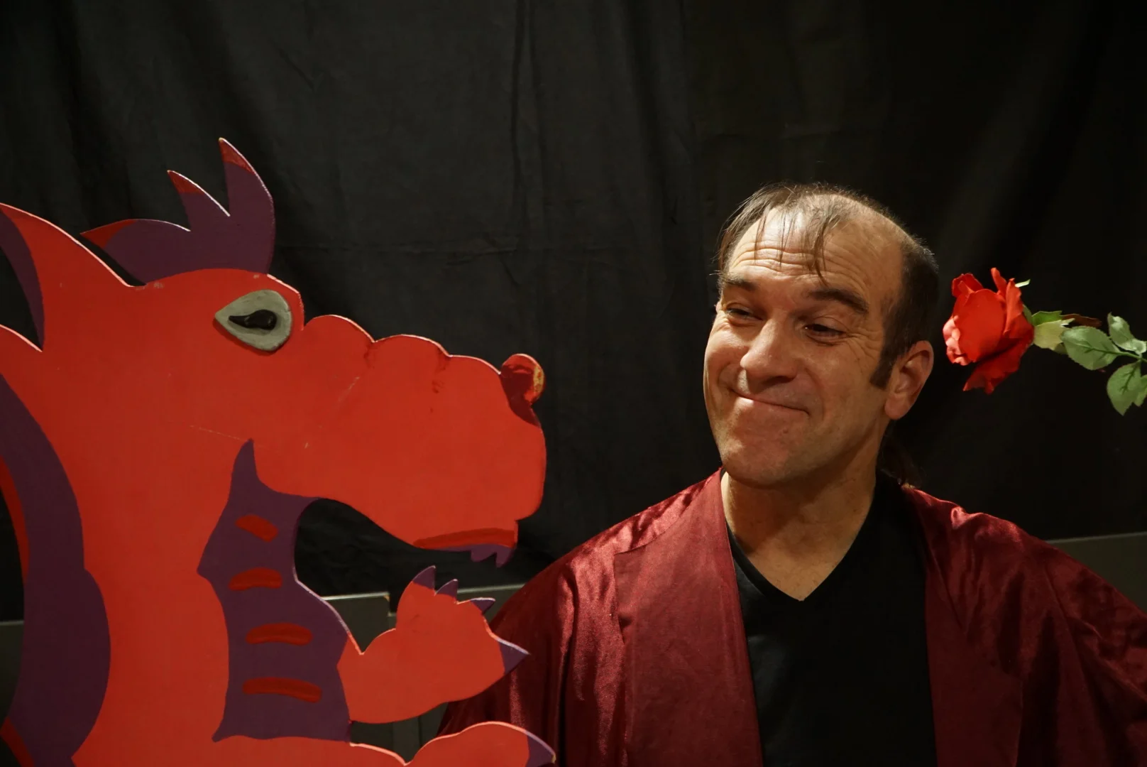 La Rosa del Drac és una lliure versió de la llegenda de Sant Jordi. És un espectacle infantil que combina titelles amb personatges de carn i ossos.